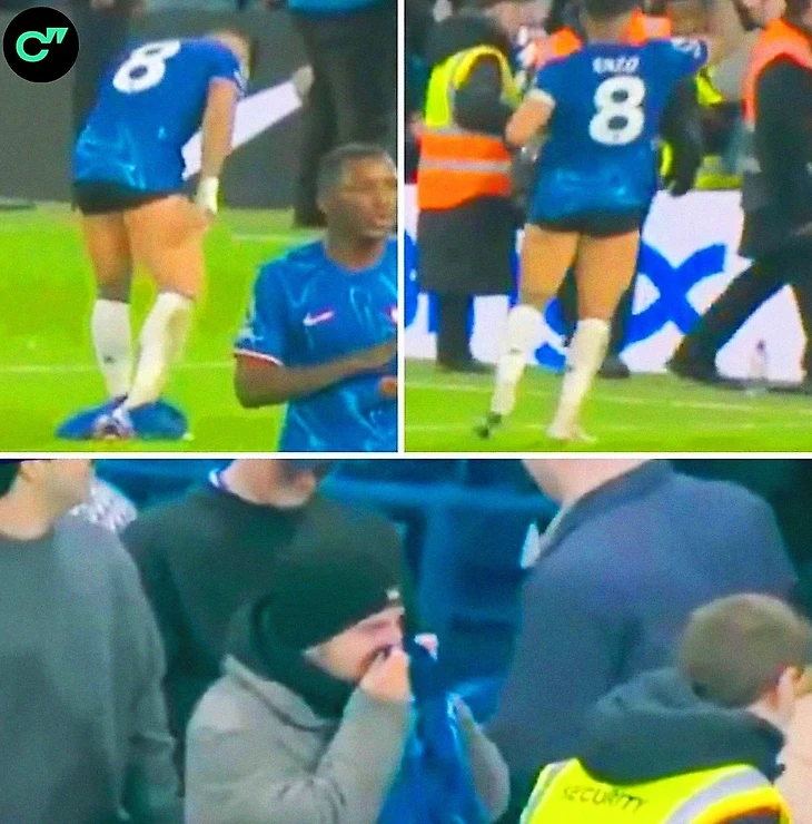 Энцо после матча с «Вест Хэмом» подарил фанату «Челси» шорты – а тот решил их понюхать 😐