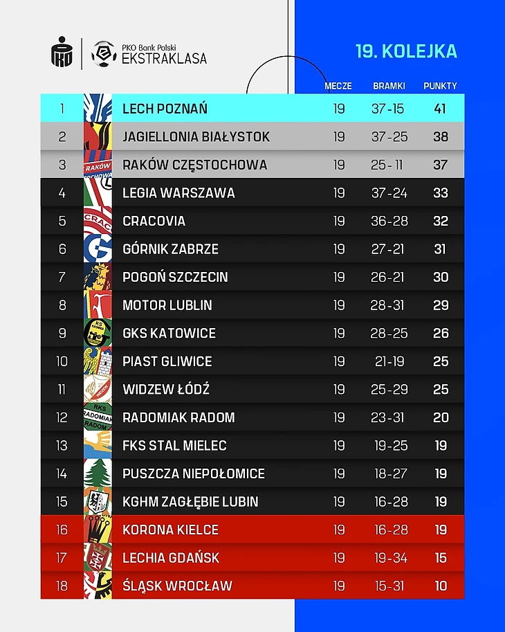 Фото: ekstraklasa.org, rakow.com, korona-kielce.pl, puszcza-niepolomice.pl, lechpoznan.pl