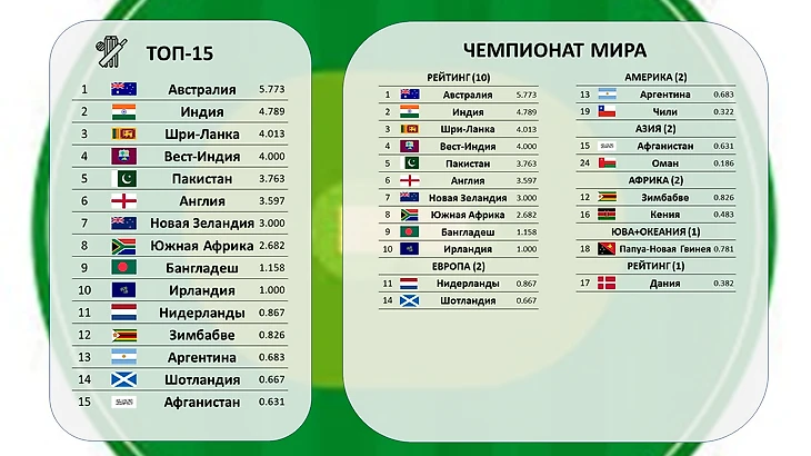 Учитывались формат ODI и T20. Формула отбора взята из Чемпионата мира по T20.