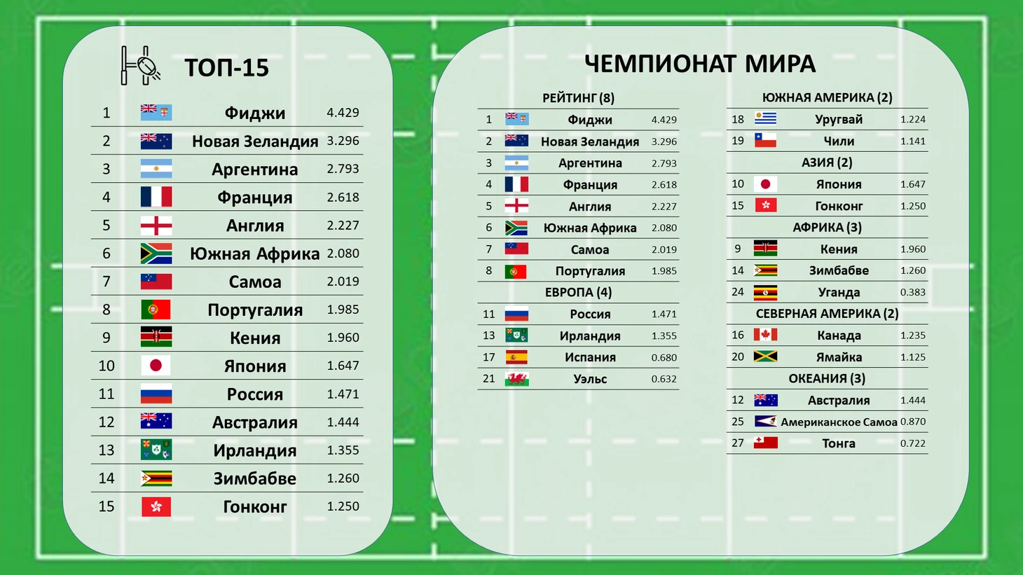 В лидерах постоянные участники Кубков Наций (Европы и Южного полушария). Также традиционно сильны сборные из Океании, плюс стоит отметить Грузию, Японию и Намибию.