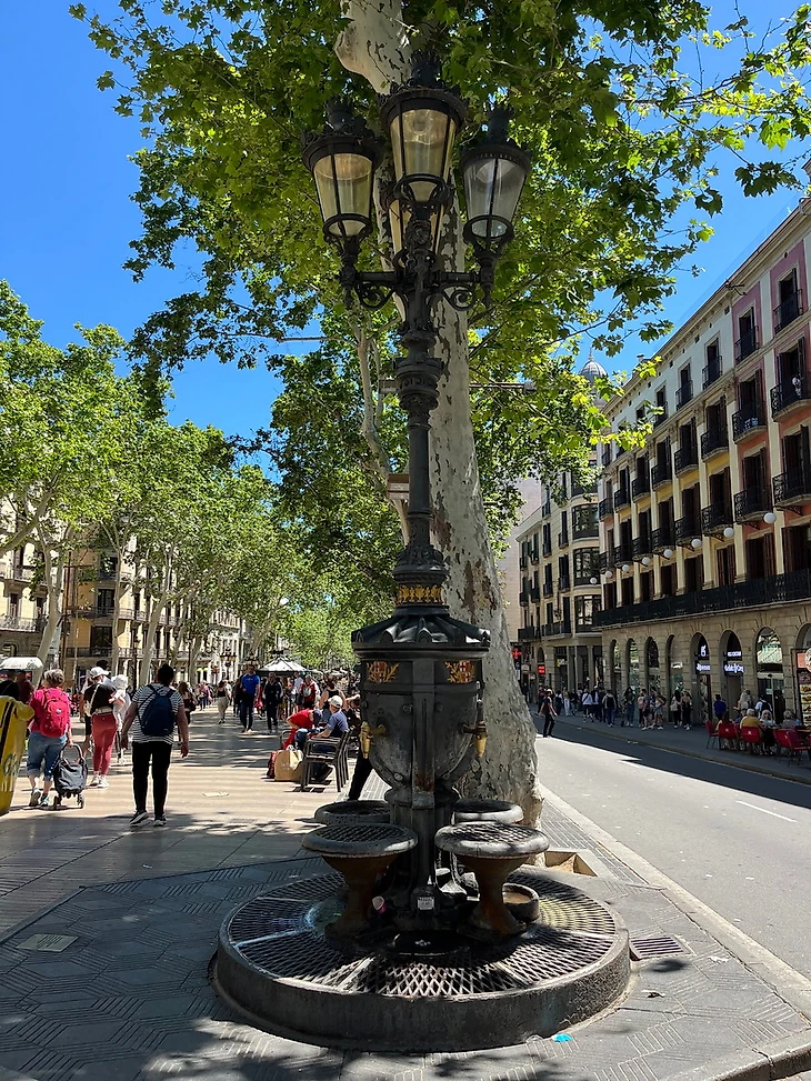 Далее я немного прогулялась по городу и посетила фонтан Каналетес, который находится на самой известной улице Барселоны – Ла Рамбла. Этот фонтан известен тем, что после побед «Барсы», здесь собираются болельщики клуба и празднуют победы с 1930-х годов.