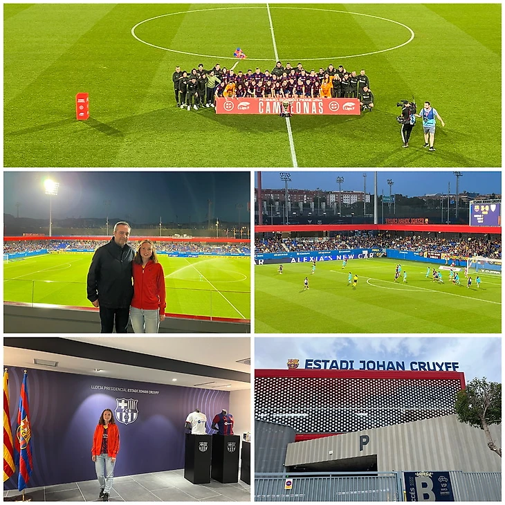 Затем я отправилась на матч женской «Барсы» против «Атлетика Бильбао» на «Стадион Йохана Кройфа». Он предназначен для женской «Барселоны», «Барселоны Атлетик», а также игр юношеской ЛЧ. На матч меня пригласил Пауло Араухо. Мы сидели в VIP-ложе с именными креслами, вместе с руководством клуба, спонсорами и приглашенными гостями. В перерыве был организован фуршет, а также фотозона.