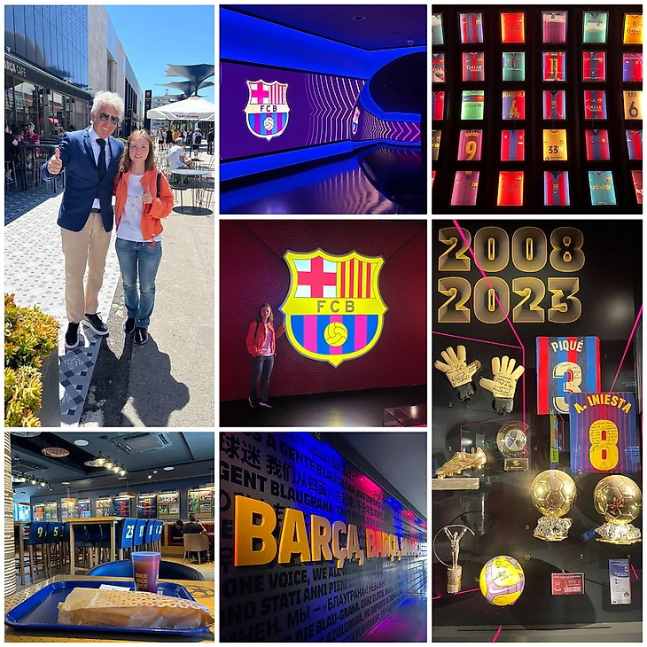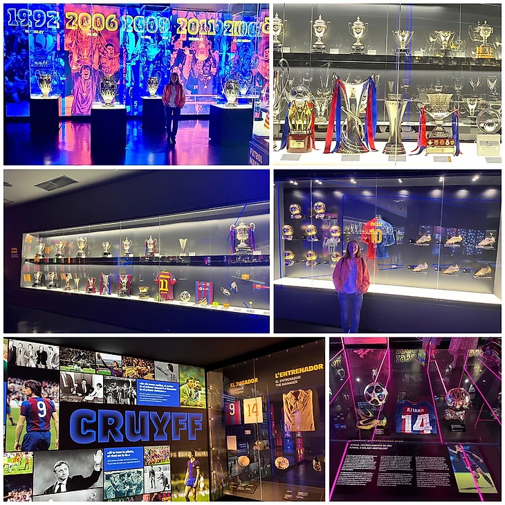 Третий день был посвящен походу в клубный музей «Барселоны». В одной из моих прошлых поездок в Каталонию я уже посещала его, но спустя несколько лет он сильно изменился. Теперь музей стал более интерактивным. Экскурсия в музее сопровождается аудиогидом на разных языках, в том числе русском. Появилось очень много стендов, связанных с женским футболом, отдельная экспозиция, посвященная лучшей футболистке мира Айтане Бонмати и стенд с трофеями, выигранными женской «Барсой». Появились интерактивные столбы с электронной панелью, посвященные действующим футболистам клуба. На них можно посмотреть яркие моменты матчей игроков и их биографию.