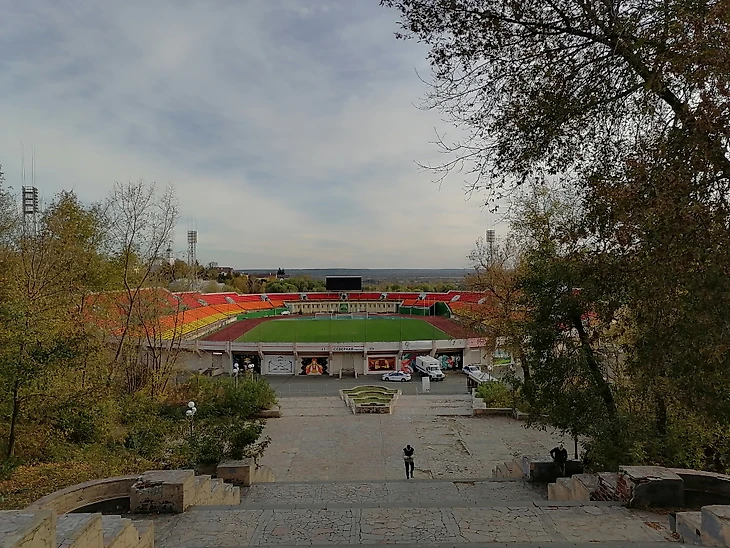 Стадион Урожай. Очень необычно смотрится конструкция в виде футбольного мяча⚽.
