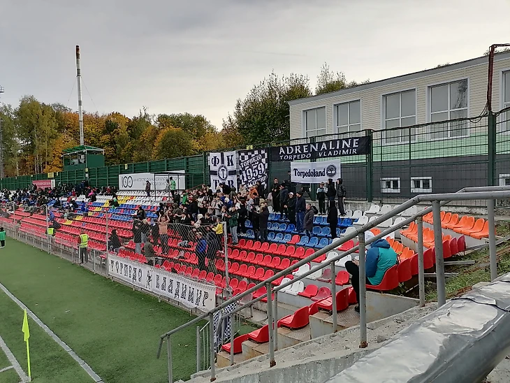 Прогулялись, полюбовались на Владимирские пейзажи и мчим на футбол🚙. Подъезжаем к стадиону и сначала нашему взору открывается стадион Торпедо. К сожалению, в аварийном состоянии😒.