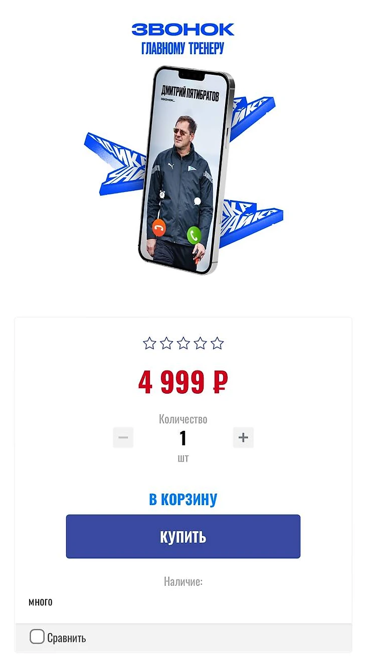 Разве что, у песчанокопской «Чайки» можно купить звонок главному тренеру за 4 999 руб или сборы с командой за 249 999 руб.