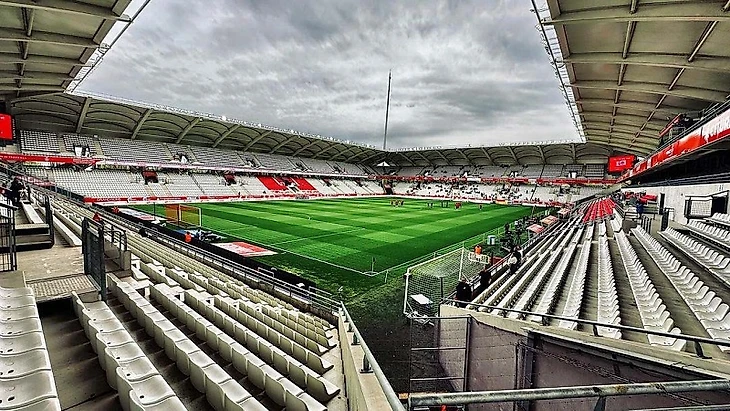 Когда в начале 2000-х гг. стало понятно, что Гавру нужен новый стадион, городское сообщество Гавра выкупило территорию бывшей сортировочной железнодорожной станции Сокванс. Открытие новой арены состоялось летом 2012 г. Жители города имели возможность выбрать название нового стадиона, и этот выбор пал на вариант Stade Océane («Стад Осеан»). Уверен, не нужно быть лингвистом, чтобы понять: слово océane значит «океанический». Объясняется такое название просто: Гавр – портовый город на берегу Атлантического океана (пролива Ла-Манш, если быть точнее, но не увлекаться гидрографией).