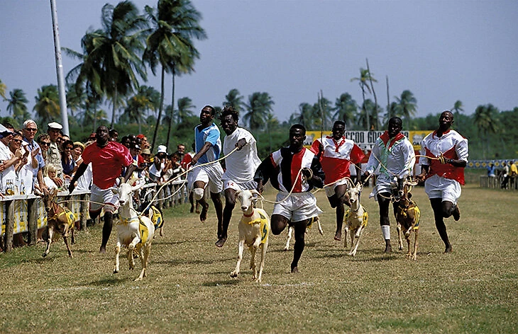 Если вдруг окажетесь на Тобаго в пасхальную неделю, сходите во вторник на необычные гонки. Соревнования с козлами – это традиция из прошлого, когда бедные люди не могли позволить скачки на лошадях и заставляли бежать козлов. Нет, их никто не седлает; хозяин козла командует чуть сзади, держа его за веревку и подгоняя прутом.