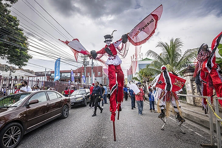 Особенность тринидадского карнавала – в костюмах и персонажах: десятки видов дьяволов, люди на ходулях, в костюмах индейцев, летучей мыши, быка и других животных. Также есть пародии на французскую знать – это напоминание о делах трехсотлетней давности, когда Франция занималась на острове плантациями и запрещала карнавалы, хотя и не управляла Тринидадом как колонизатор.