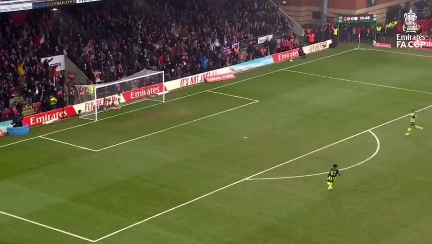 На 16-й минуте игры у дебютанта «горожан» Нико Гонсалеса отобрали мяч в центре поля. После этого форвард команды третьего английского дивизиона Джейми Донли пробил по воротам «Ман Сити» из зоны рядом с центральным кругом.