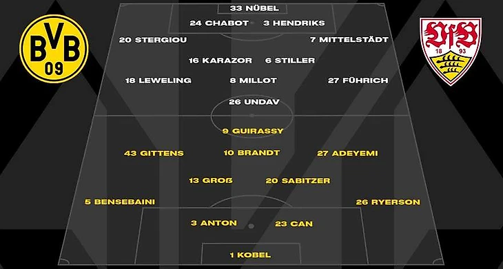 В субботу днем 8 февраля состоялись следующие 5 матчей игрового дня, включая игру в Дортмунде, в которой дортмундская «Боруссия» на своем родном стадионе «Сигнал Идуна Парк» принимала «Штутгарт». Главный тренер гостей Себастьян Хенесс выставил на матч практически сильнейший состав на данный момент: Александр Нюбель, Леонидас Стергиу, Максимилиан Миттельштедт, Юлиан Шабо, Ангело Штиллер, Энцо Мийо, Атакан Каразор, Джейми Левелинг, Рамон Хендрикс, Крис Фюрих и Дениз Ундав.
