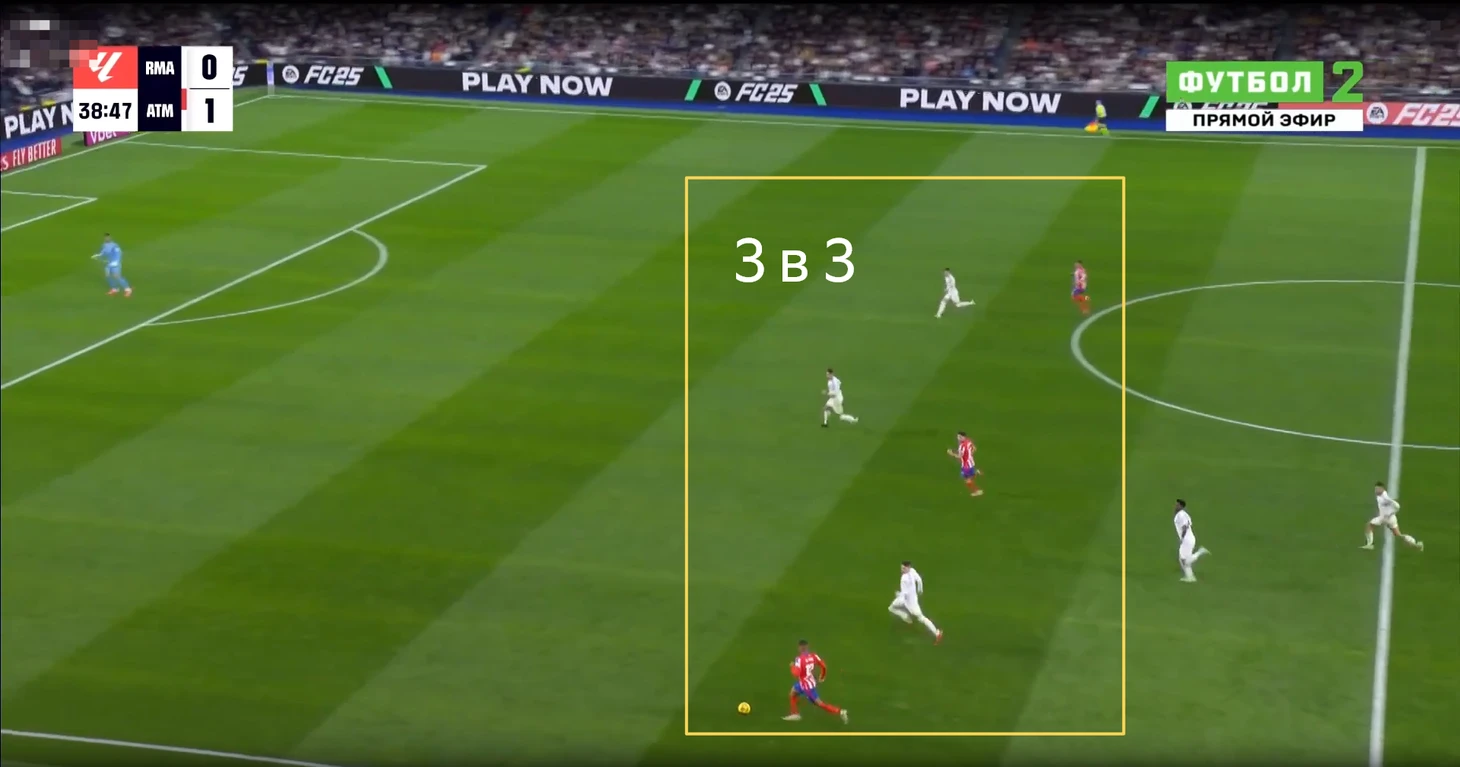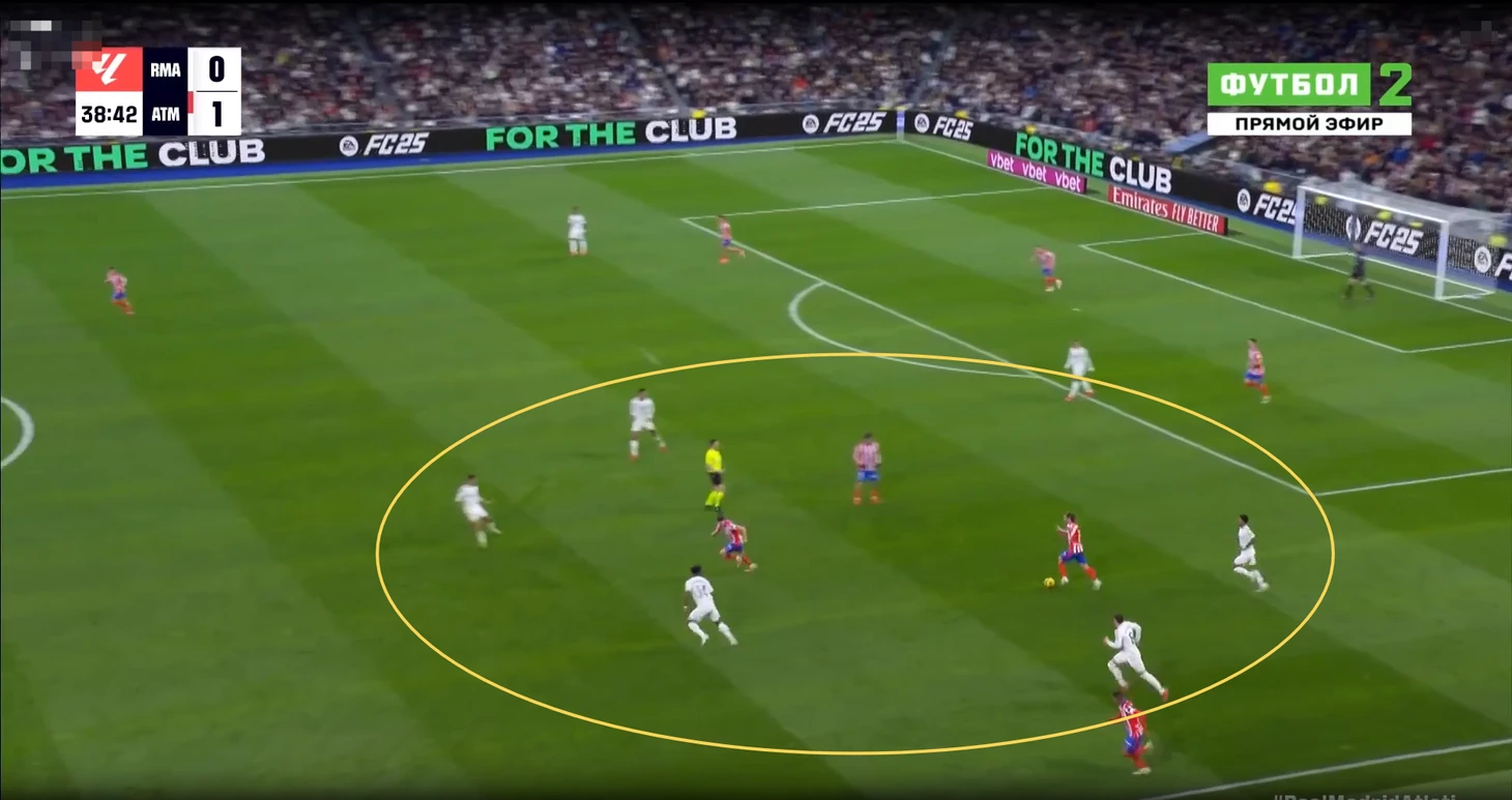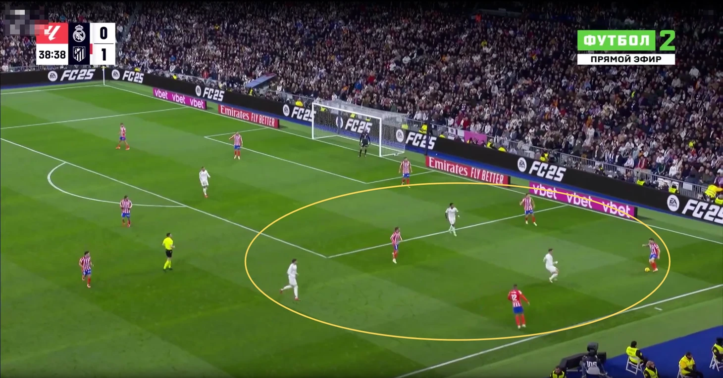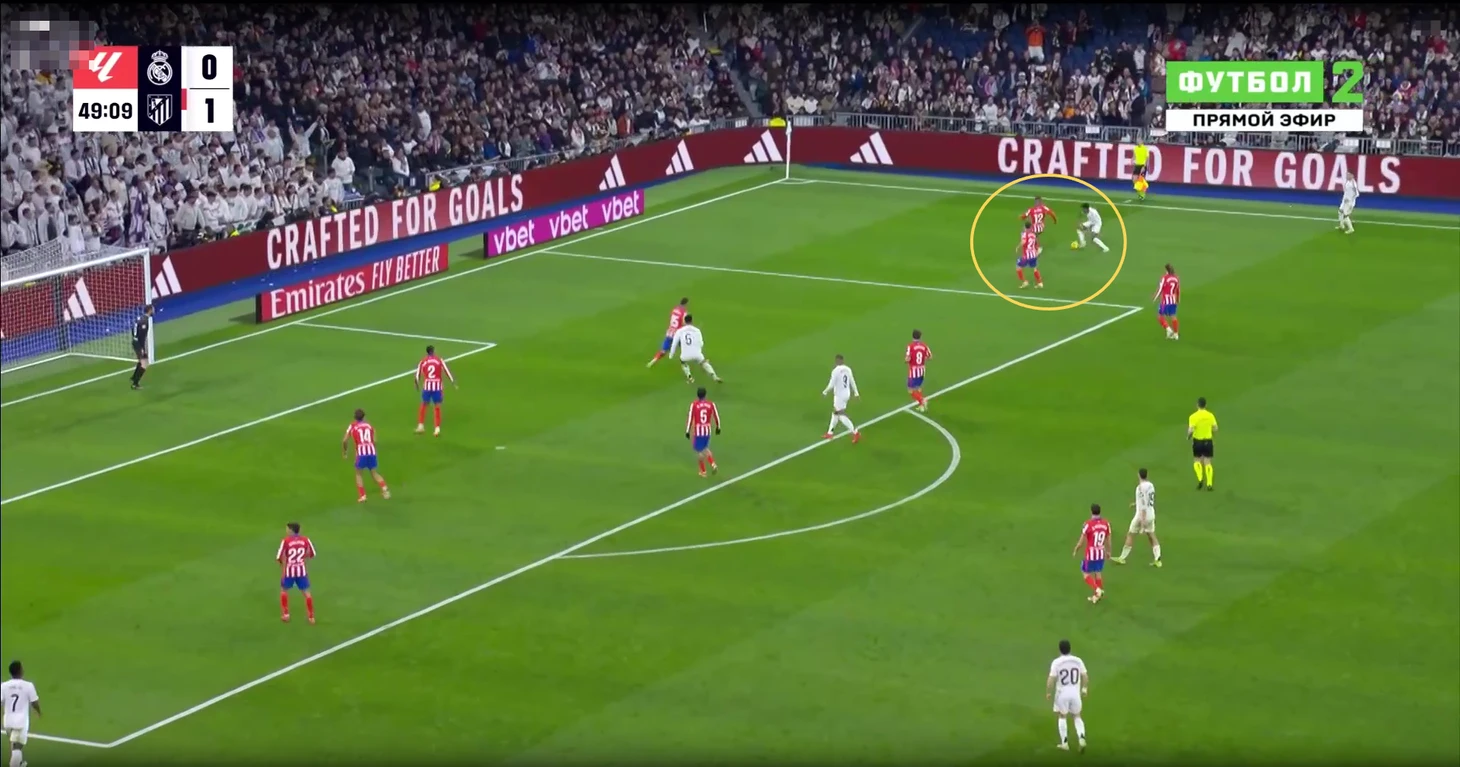 У «Атлетико» на флангах всегда была подстраховка. Поэтому позиционного или численного преимущества у команды Анчелотти в этих зонах быть не могло. Но «Реал» пользовался индивидуальными качествами своих игроков, которые за счёт дриблинга ломали структуру соперника.