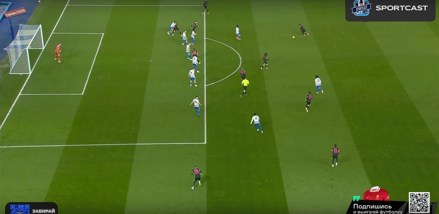 Особенно это резонирует с билдапом в 2+3, где оба фуллбека стояли на линии опорника, чтобы перестраховать себя от быстрых атак Брайтона. Здесь мы страхуем, а там решаем забить на разрывы между линий?