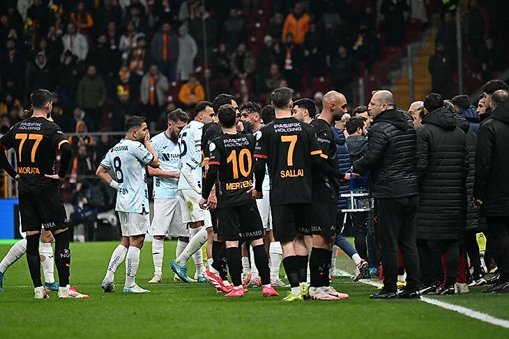 Фанаты «Галатасарая» освистали соперников. Вскоре ушли и арбитры, затем и футболисты «Галатасарая».
