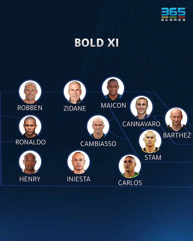 За лысых отвечают: Фабьен Бартез, Фабио Каннаваро, Яп Стам, Дуглас Майкон, Роберто Карлос, Эстебан Камбьяссо, Зинедин Зидан, Андрес Иньеста, Арьен Роббен, Роналдо Назарио и Тьерри Анри.
