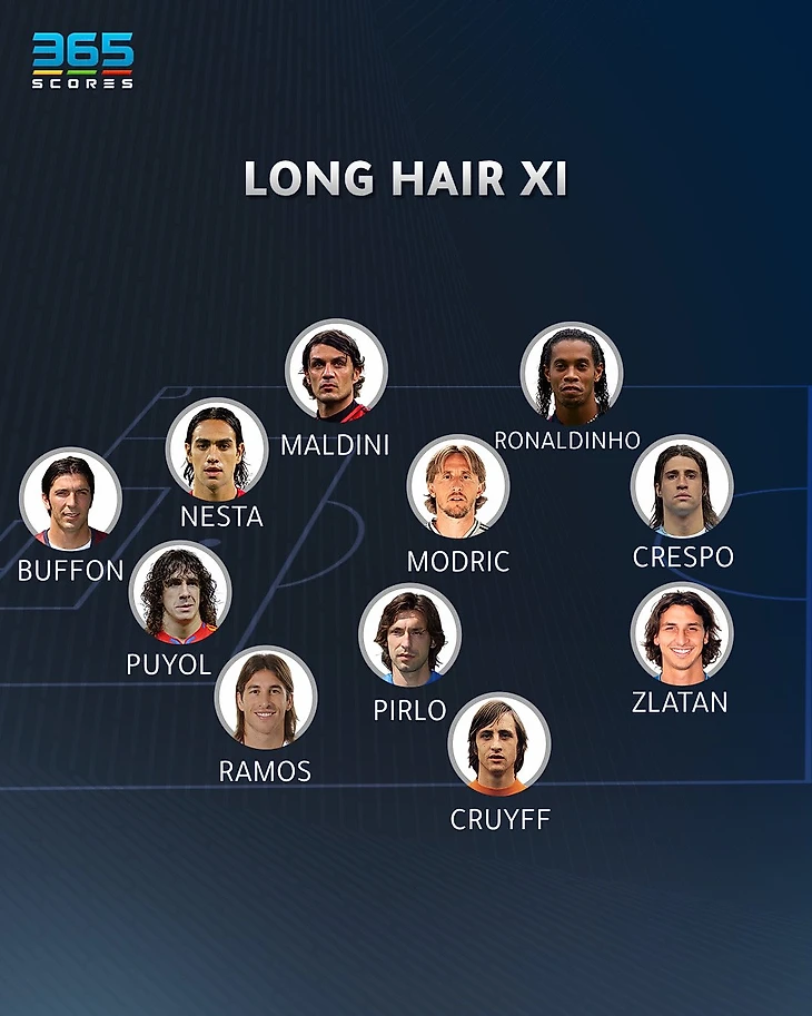 В команду игроков с роскошными шевелюрами вошли: Джанлуиджи Буффон, Серхио Рамос, Карлес Пуйоль, Алессандро Неста, Паоло Мальдини, Андреа Пирло, Лука Модрич, Йохан Кройфф, Роналдиньо, Эрнан Креспо и Златан Ибрагимович.