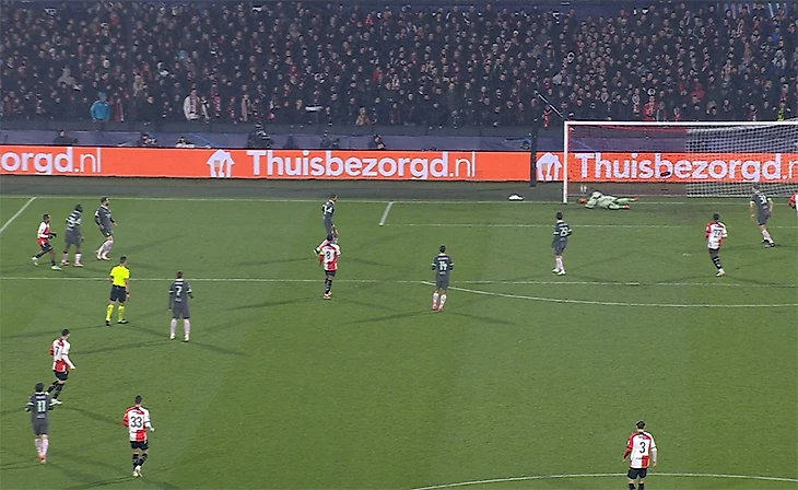 Я так понимаю на половине поля Фейноорда дождя не было, раз их вратарь спокойно справлялся с дальними ударами, более сложными