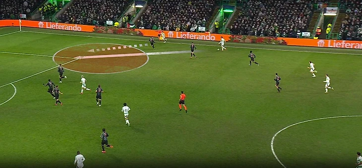 Интересны причины, почему Компани вообще изменил привычную расстановку. Возможная мотивация – не допустить ситуаций 1-в-1 у Николаса-Геррита Кюна, резкого игрока правого фланга атаки «Селтика», против Геррейру. При новой расстановке Кюн оказывался против Дайера, который тоже не отличается скоростью, но способен хотя бы давить физической мощью.