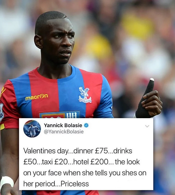 Янник Болази, который запомнился по игре в АПЛ за «Эвертон» и «Кристал Пэлас», когда-то выдал разрывной твит про день святого Валентина.