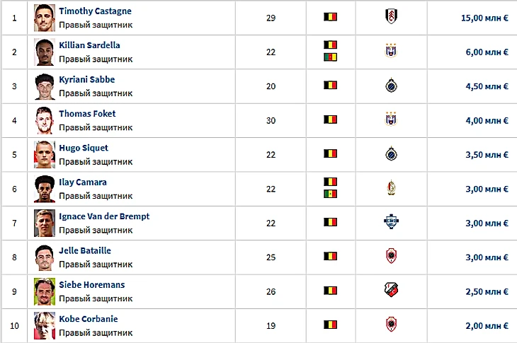 Ну и про земляков Тома Менье не забываем – эталонная сборная, золотое поколение, Де Брюйне, Лукаку и тд. А на флангах обороны полнейший мрак и безнадега. Причем давно. Вот с европейцами обратная ситуация – если бразильцы и им подобные ребята бегают с недокрученными ценниками, у европейцев ценники перегретые.