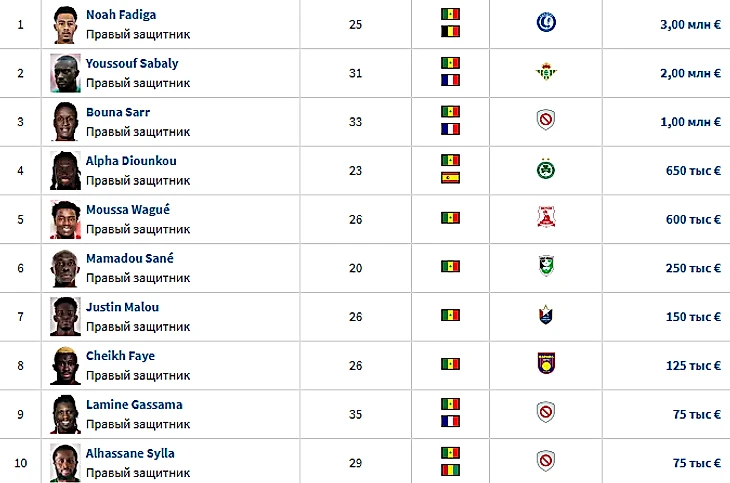 Вот список самых крутых его земляков. Глаза разбегаются – сколько талантов пропадает вдали от России! И точно такой же скудный выбор на рынке Камеруна или Кот’Д’Ивуара.