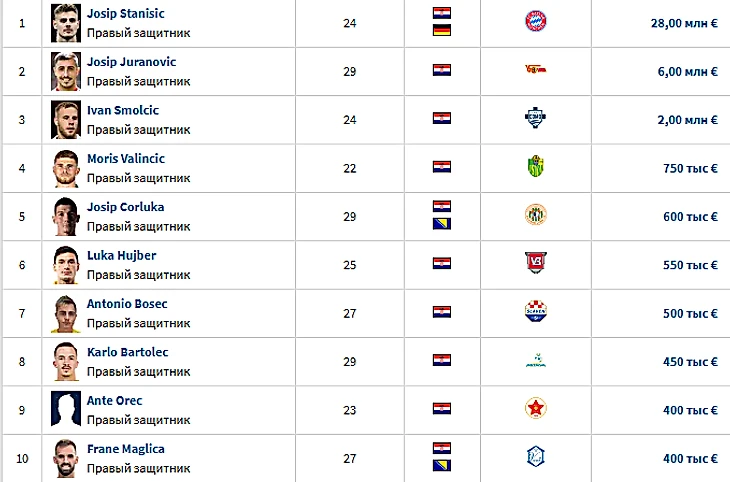 Заглянем на хорватский рынок – после Станишича провал. Я специально веду разговор не про топов, а про тех парней, которые реально могут переехать в Россию и быть ну точно не хуже Денисова или Рассказова. Не брать же ребят, кому под тридцатник.