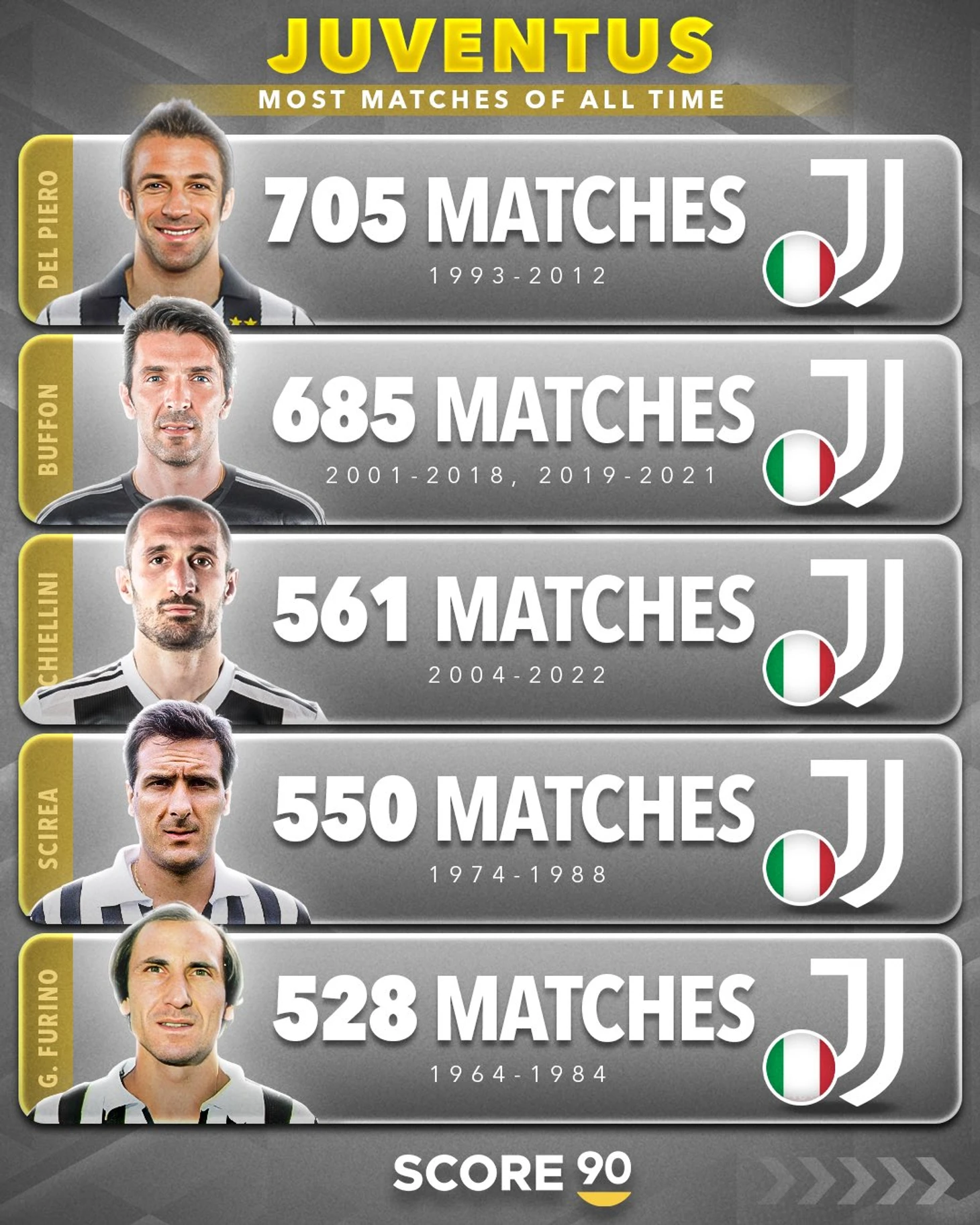 Портал Score90 пробежался по европейским грандам и составил топы игроков, которые провели наибольшее количество матчей в составе своей команды.