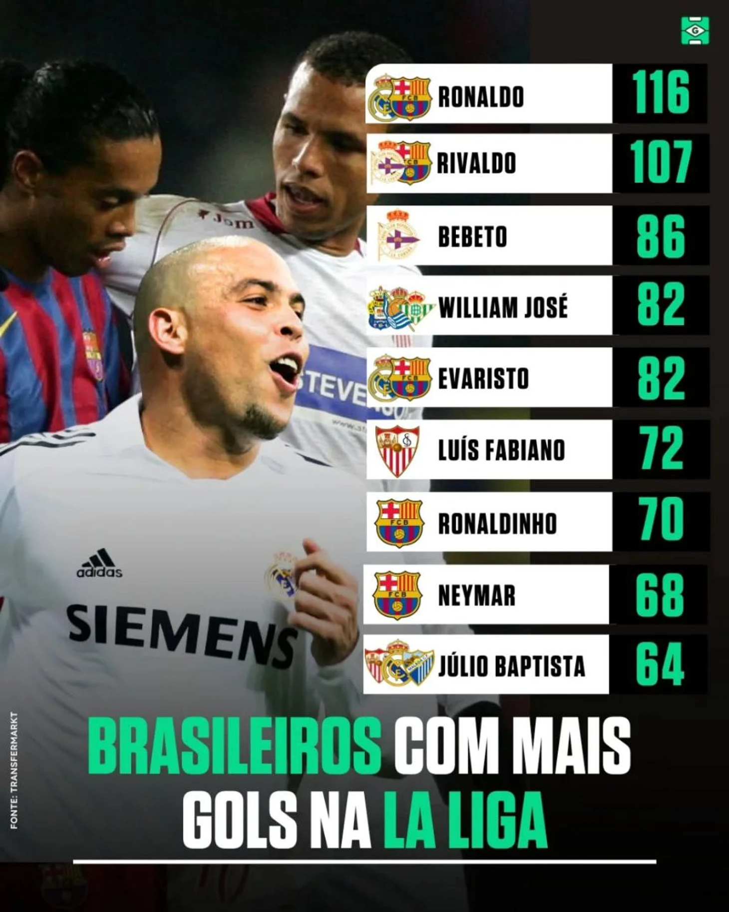 Скоро уже Доривал Жуниор назовет состав на матчи с Аргентиной и Колумбией. В свете последних событий совсем грустно выглядит позиция центрфорварда. Вообще перспективы нового поколения нападающих в Европе выглядят так себе. Очень туманно - одни умчались за славой, не успев толком повзрослеть (и не факт что повзрослеют), других же мучают болячки - как физические, так и ментальные. Перспектива карьеры Габи Жезуса и Ришарлисона кажется мне пессимистичной - тут тебе и травмы серьезные, и к 30 уже обоим. В АПЛ разве что разошедшийся Матеус Кунья может как-то догнать их, но надо понимать что Кунья - не чистый форвард. Остается только ностальгировать, что когда-то бразильские форварды нередко не просто участвовали в бомбардирских гонках,но и выигрывали их. Давайте посмотрим на списки самых удачливых бомбардиров-бразильцев в ведущих лигах Европы.