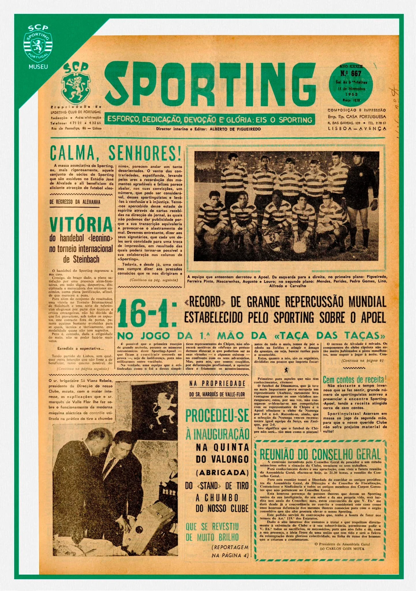 В 1963 году на международной арене дебютировал кипрский АПОЭЛ. В первом раунде Кубка Обладателей Кубков команда из Никосии буквально не заметила норвежский «Йевик». Все вопросы о выходе в 1/8 финала киприоты решили дома, забив в ворота гостей шесть безответных голов. Хет-трик Такиса Хаилиса (15-я, 61-я и 80-я минуты, он же забил первый еврокубковый гол своей команды) в сумме с голами Никоса Агафоклеуса (67-я), Мариоса Папаллоса (78-я) и Никоса Канцилериса (86-я) практически гарантировали путевку в следующий раунд. В Норвегии АПОЭЛ снова обыграл соперника, на этот раз 1:0. И в 1/8 финала его ждал «Спортинг».