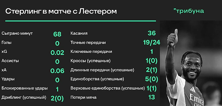 плохие решения на мяче. На контрасте с Итаном Нванери, который просто разрывал на противоположном фланге, Стерлинг выглядел просто статистом.