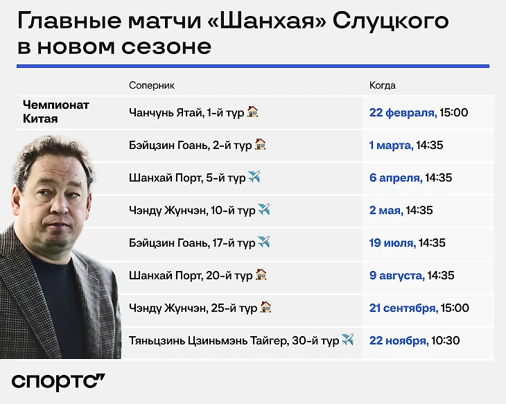 «Шанхай» Слуцкого возвращается: полный календарь Суперлиги-2025