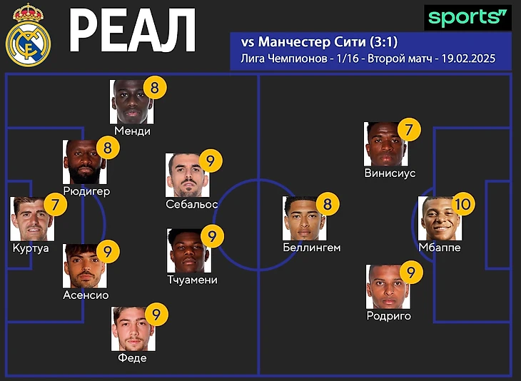 Килиан Мбаппе – 10. Сам факт хет-трика в плей-офф Лиги Чемпионов уже тянет на «десятку», но исполнение во всех трех мячах было таким, что тут и «11» было бы не жалко. Сделал разницу в ключевых эпизодах, забив три очень красивых гола. Особенно запомнился второй: в столь сжатом пространстве так (!) убрать Гвардиола и уже через секунду пробить мимо вратаря – вау! Высочайший уровень мастерства. Теперь Мбаппе заимел свою первую великую ночь в ЛЧ в футболке «Мадрида». Надеемся, первую из очень многих.