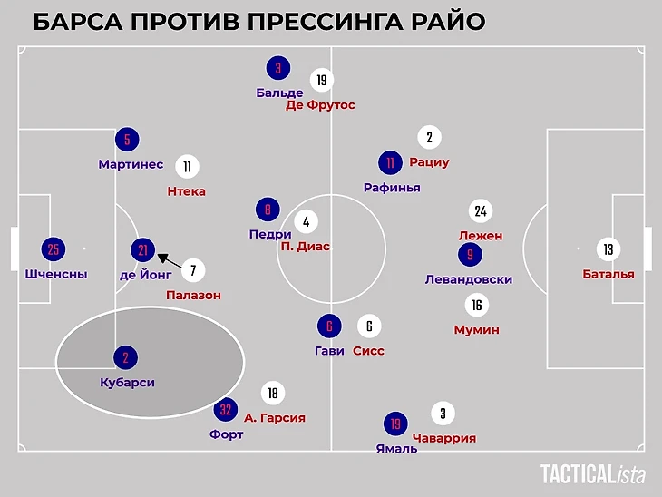 «Барса» прочитала прессинг «Райо» – выходили через опускания де Йонга и свободного Кубарси