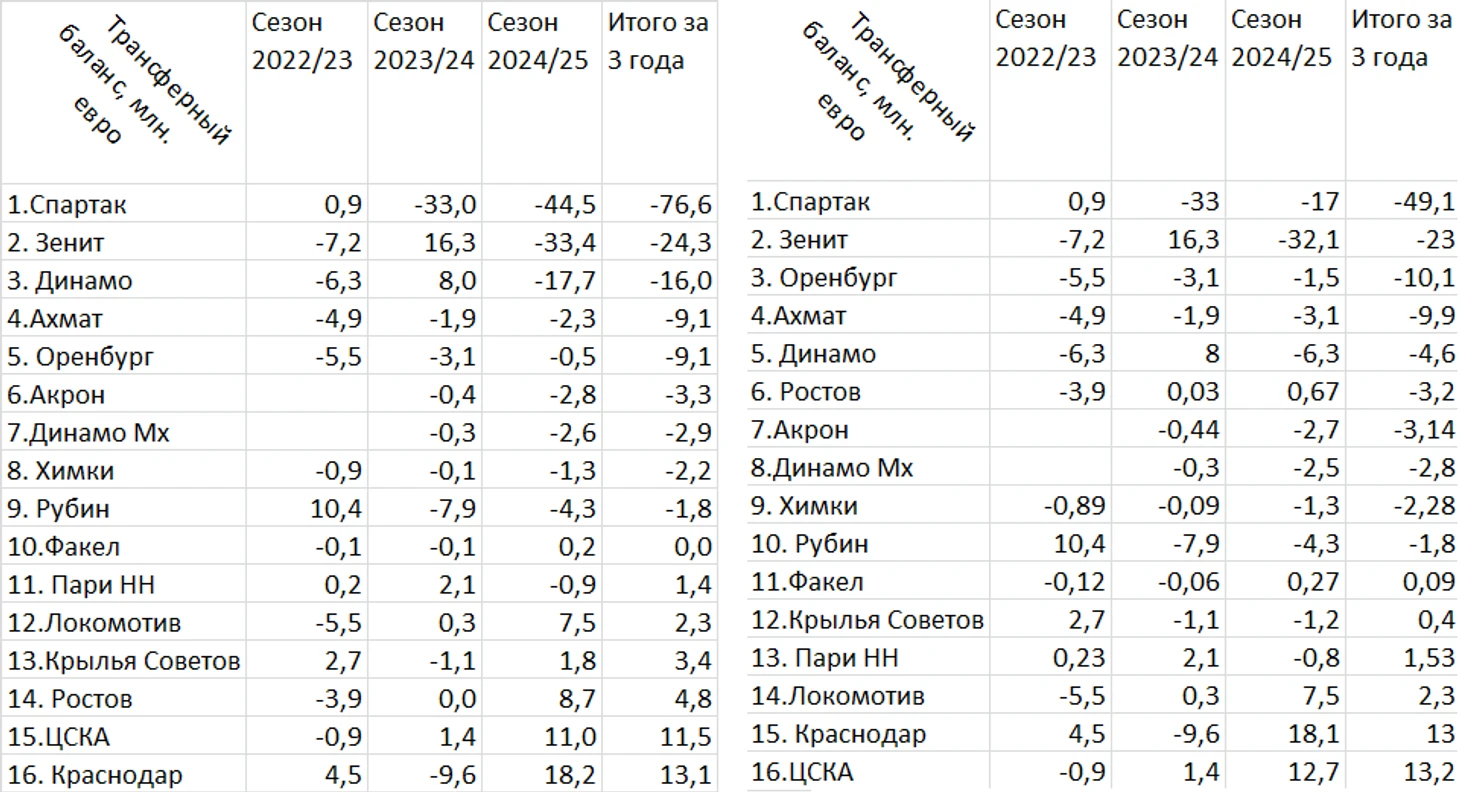 Громким без кавычек, потому что ему предшествовало заявление Гендиректора Зенита, да и мы в вышеупомянутом материале предполагали, что одним Луисом Энрике дело не обойдется. Однако что получилось – то и получилось, вот таблица трансферного баланса за 3 последних года: слева на момент закрытия ТО; справа – после его первой недели