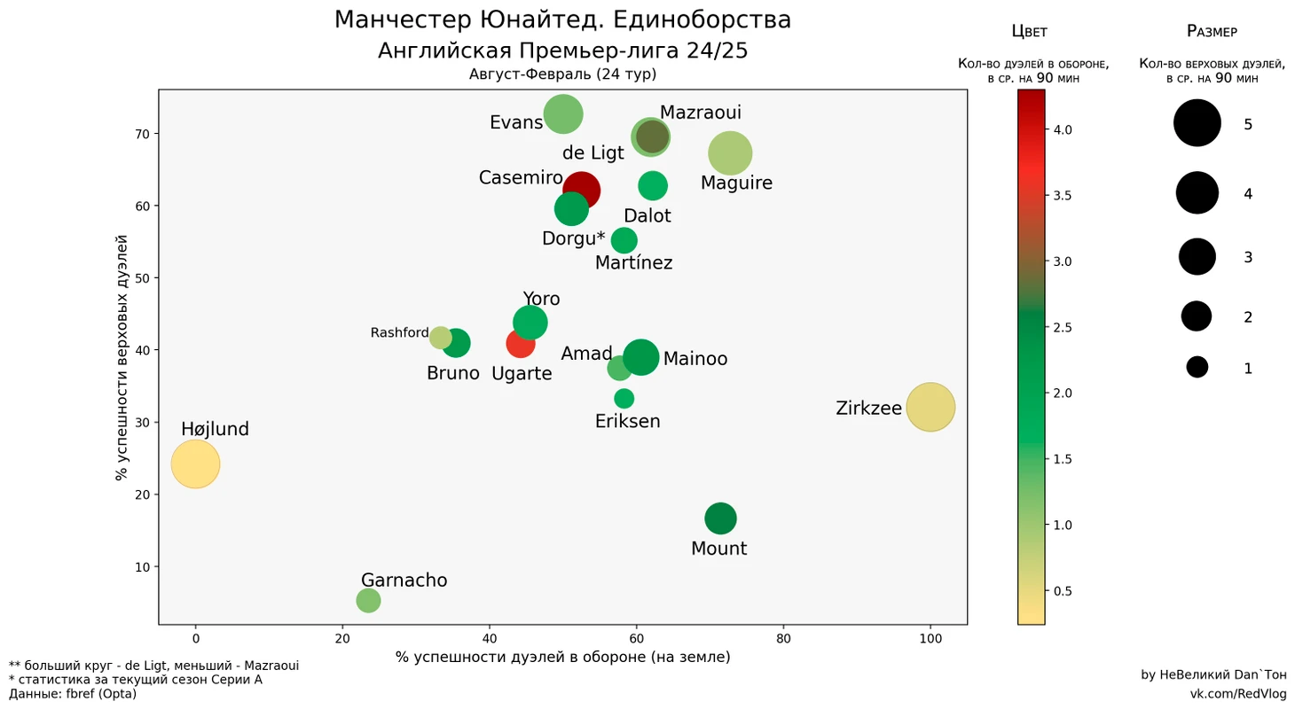 Угарте и Каземиро лидеры по объему дуэлей внизу. Каземиро и тут лучше. Мазрауи и внизу очень хорош, Далот уступает лишь в объеме. Де Лигт и Харри и тут показывают класс.
