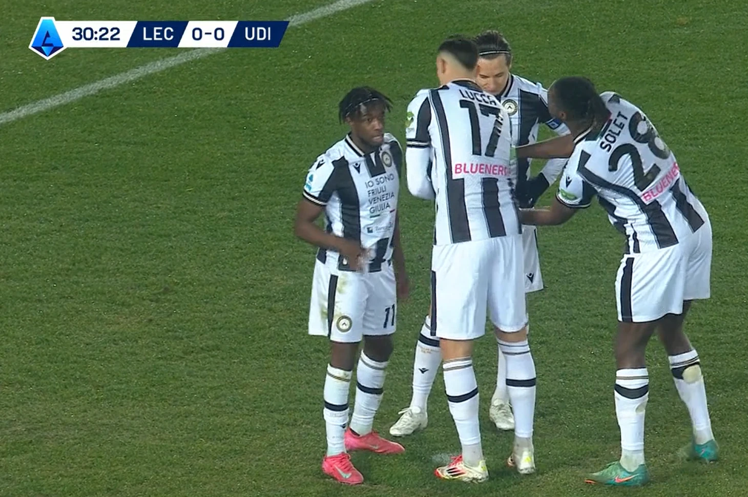 В первом тайме «Удинезе» заработал пенальти. До этого дня в сезоне у команды было по два забитых и незабитых пенальти: в Кубке отличились Лоренцо Лукка и Флориан Товен, в чемпионате – два промаха. Оба – у Товена.