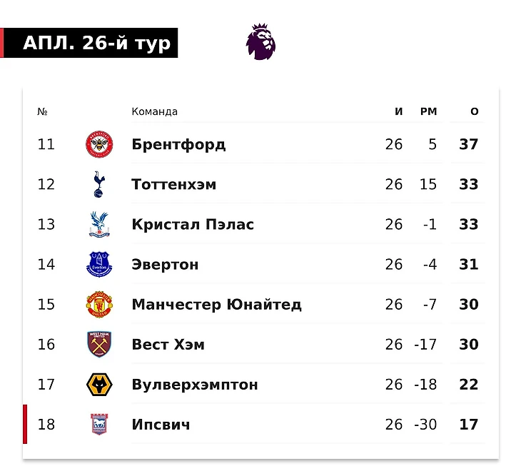 «Эвертон» идет на строчку выше – 14-м. Следующий матч – в гостях с «Брентфордом», а затем – перерыв на девять дней, так как из Кубка команда Мойеса уже вылетела.