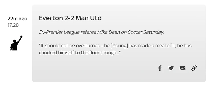 «Есть небольшой контакт, самый незначительный, но он [Янг] поставил ноги вместе, и то, как он упал, не соответствует контакту − правильное решение [отменить пенальти]».