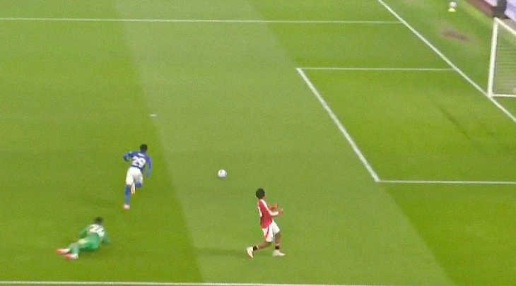 Простейшая ситуация, никакой опасности, игрок Ипсвича принимает мяч у боковой линии в середине поля. Что делает Патрик Доргу? А Патрик Доргу со всей молодецкой удали влетает в него прямой ногой. Арбитр смотрит ВАР и выписывает манкунианцу прямую красную. Музыка, аплодисменты.