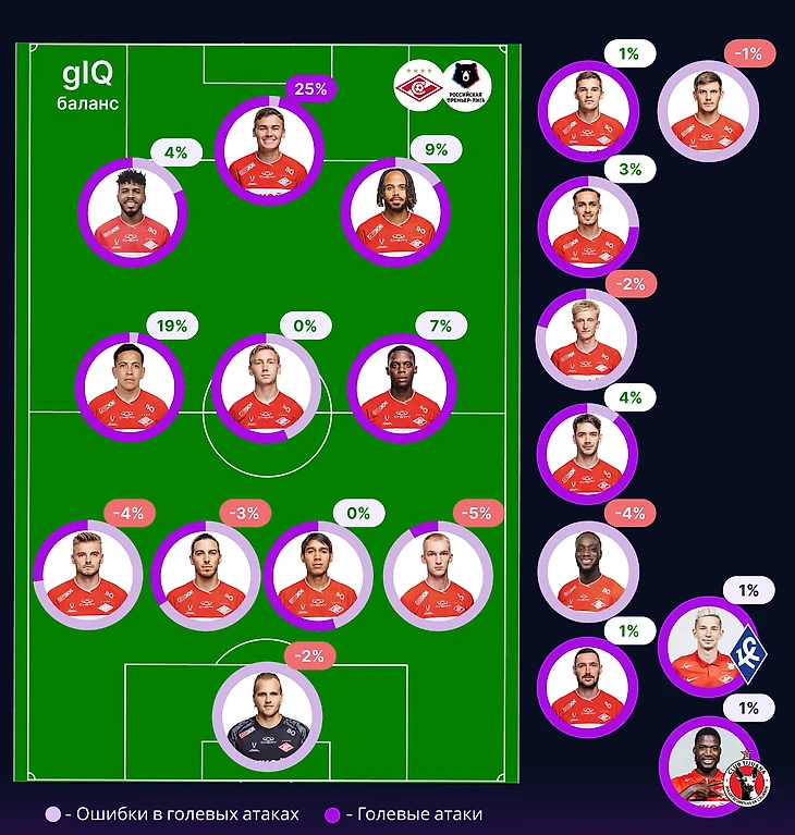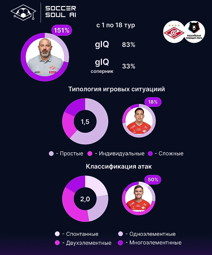 Собственный gIQ Спартака - 83%, gIQ соперников – 33%. Оба показателя – лучше, чем у всех команд, находящихся в турнирной таблице ниже.