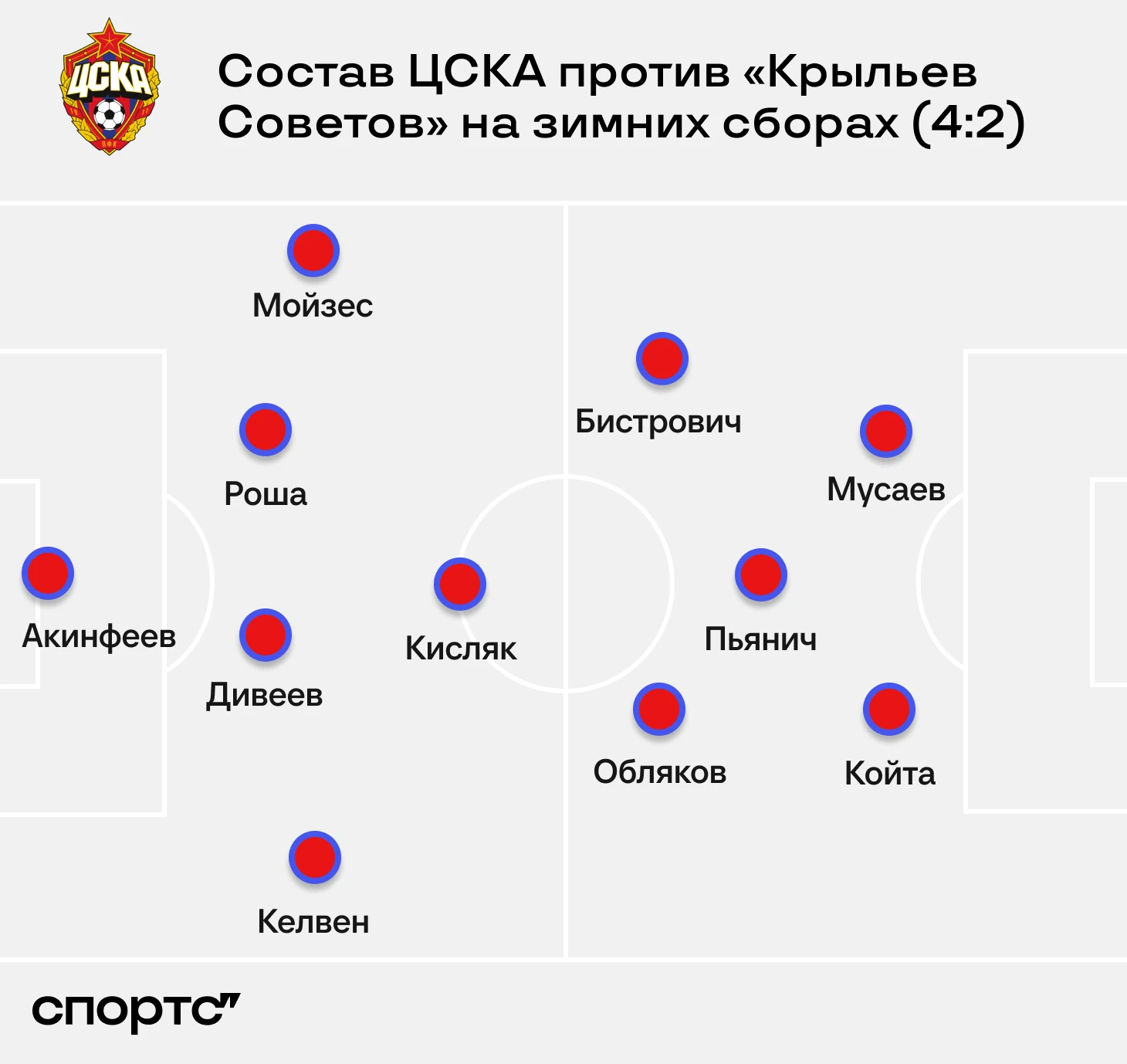 Изменения ЦСКА масштабнее. Николич отказался от 3-4-3 в пользу ромбовых 4-4-2.