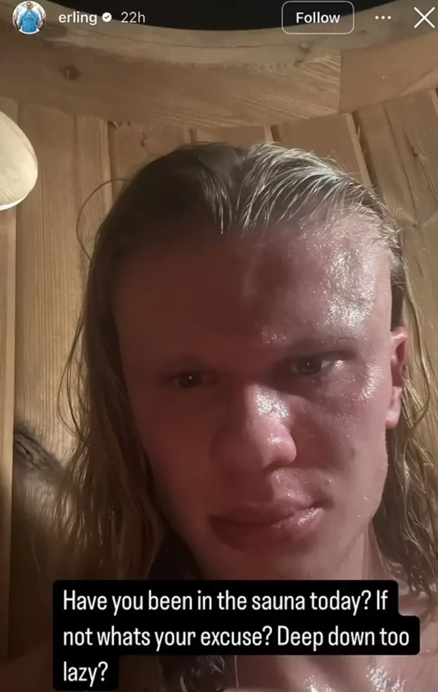 Холанд часто делится фото из сауны, подчеркивая ее пользу для подготовки к матчам. В четверг он опубликовал селфи, обращаясь к своим 38,3 млн подписчиков, и предположил, что те не ходят в сауну «потому что ленивы». В посте, сопровождавшемся его суровым взглядом в камеру, было написано: