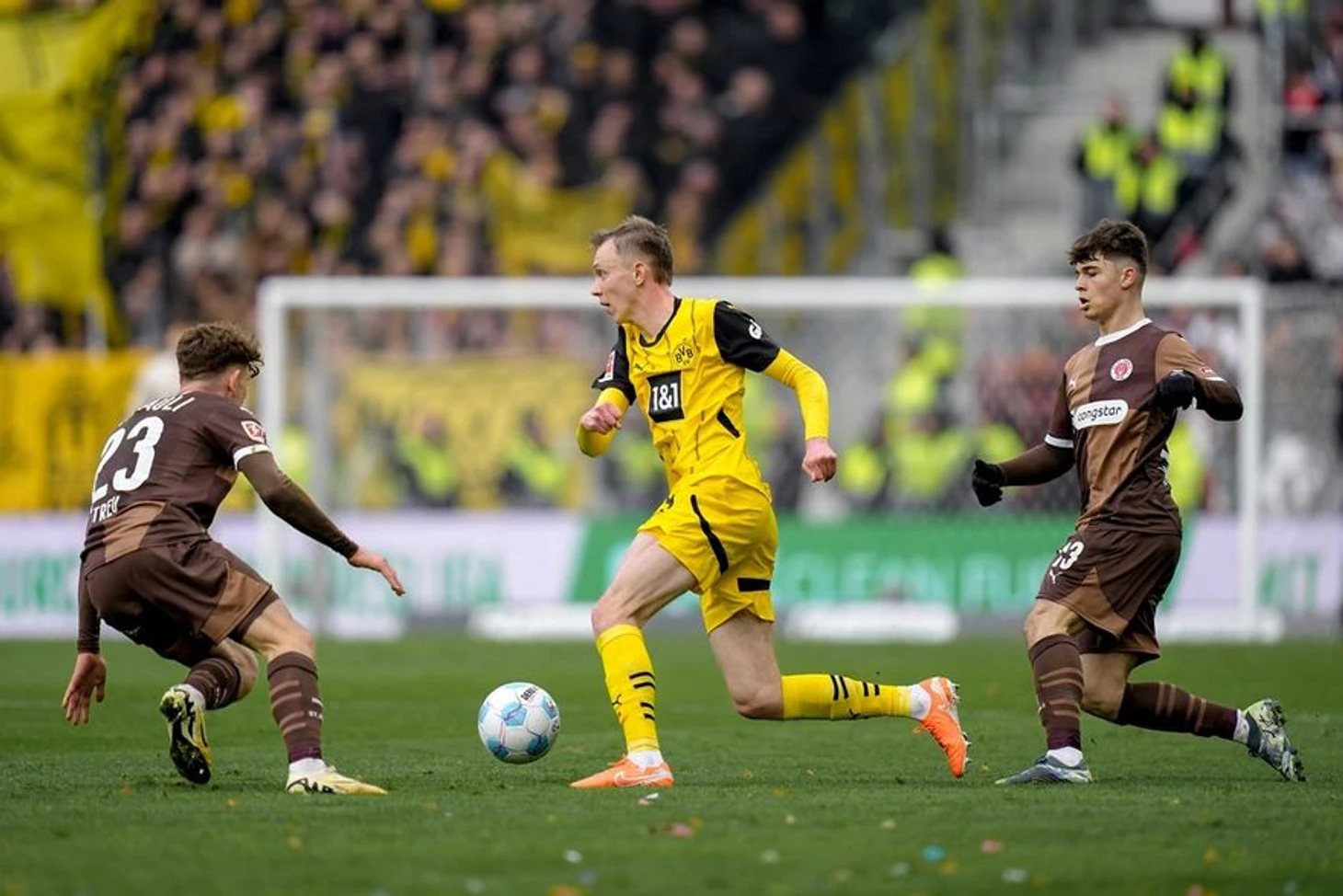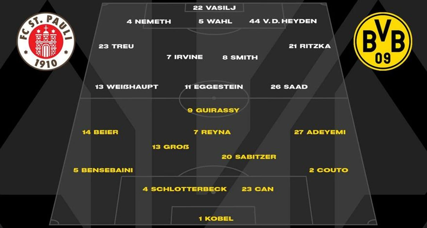 В субботу 1 марта состоялась большая часть матчей тура, включая встречу в Гамбурге, в которой на своем стадионе «Миллернтор» местный клуб «Санкт-Паули» принимал дортмундскую «Боруссию». Главный тренер хозяев Александер Блессин выставил на игру максимально боевой состав на данный момент: Никола Василь, Давид Немет, Хауке Валь, Зибе ван дер Хейден, Филипп Трой, Джексон Ирвин, Эрик Смит, Ларс Рицка, Ноа Вейсхаупт, Йоханнес Эггештайн и Элиас Саад. Гамбуржцы оборонялись по схеме в 5 защитников, а когда мяч переходил к ним, то расстановка менялась на 3-4-3 с длинными передачами вперед.