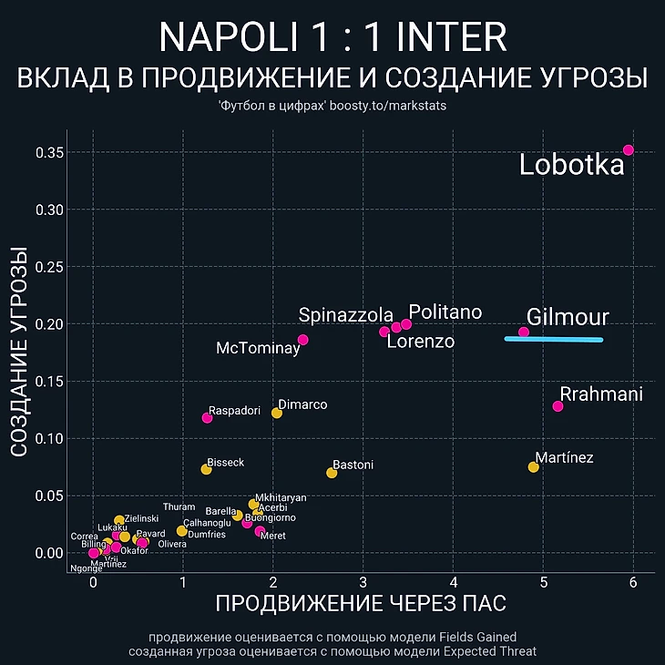 Также по такой игре, когда фаз без мяча практически нет, на мяче раскрылся и Гилмор, во второй половине показавший свой бенефис в создании опасности и продвижении мяча через пас, хотя Лоботка – это по-прежнему просто другой уровень, пусть и уже привычный: