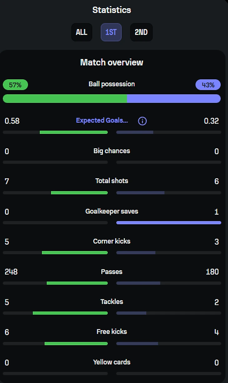 Первый тайм: минимум моментов, максимум тактики. Равная игра с первым ударом на 22-й минуте