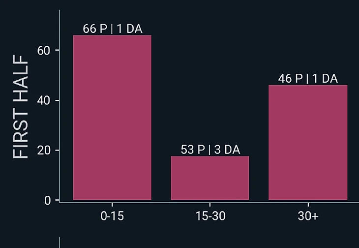 Вообще Федерико в этой игре себя вновь показал крайне неоднозначно, как и почти в каждом матче последнее время. С одной стороны, он забил феноменальный гол со штрафного и вообще нанес половину ударов своей команды в матче (3 из 6), а с другой, в обороне был хуже обычного: 0 выигранных единоборств и 1 успешное действие там. Да и в созидании у Димарко не сказать, что шло хорошо, ведь 23 касания и 9 передач за 51 минуту – это не то, что бы его лучший показатель.