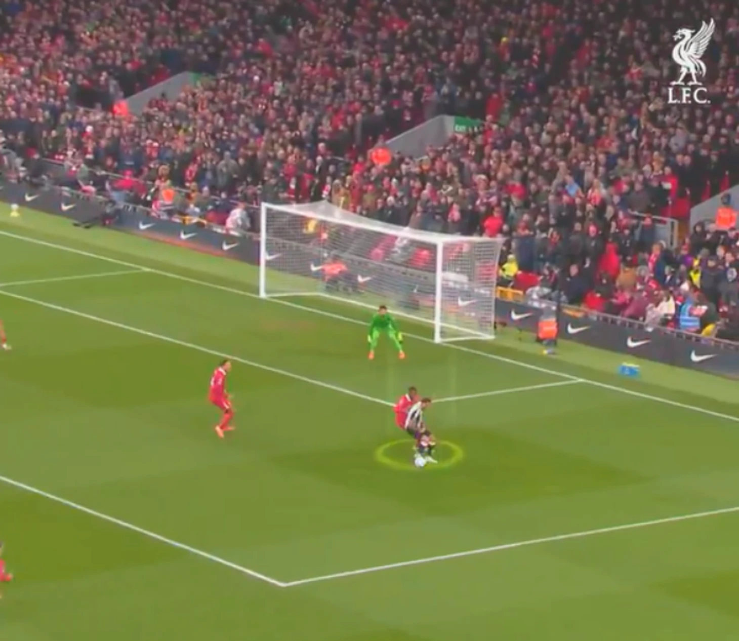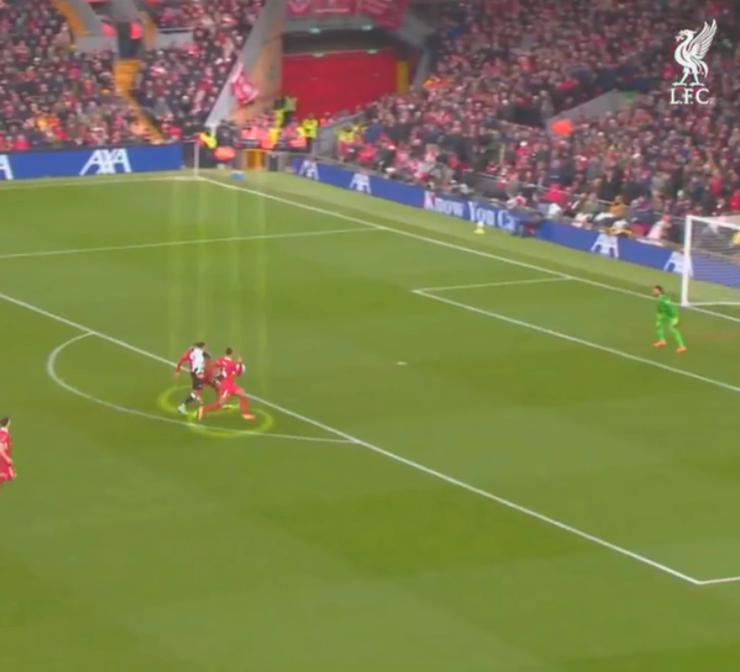 «Затем вынуждает отдать мяч на фланг, следует кросс, который подчищает его партнер Ван Дейк. Просто снимает любую опасность, великолепно».