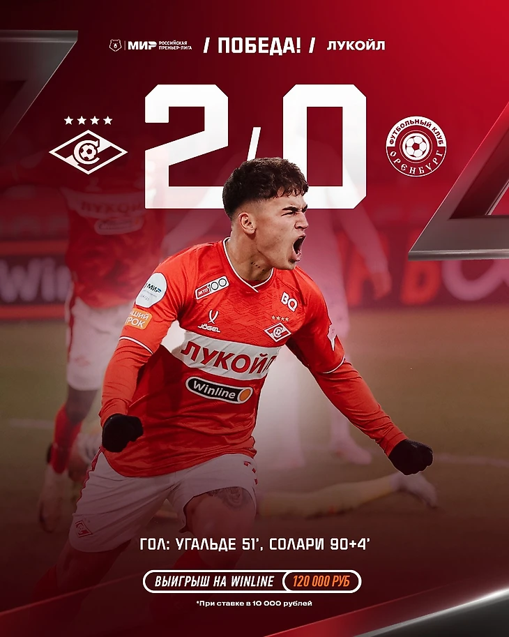 А уже в компенсированное время красно-белые поставили эффектную точку. Снова в роли ассистента выступил Маркиньос, который выкатил мяч под удар Солари. Пабло аккуратно отправил его в угол, а «Спартак» одержал седьмую победу подряд в РПЛ и сравнялся по очкам с «Краснодаром» и «Зенитом». Отличное начало весны! На очереди — гостевой матч с «Рубином».