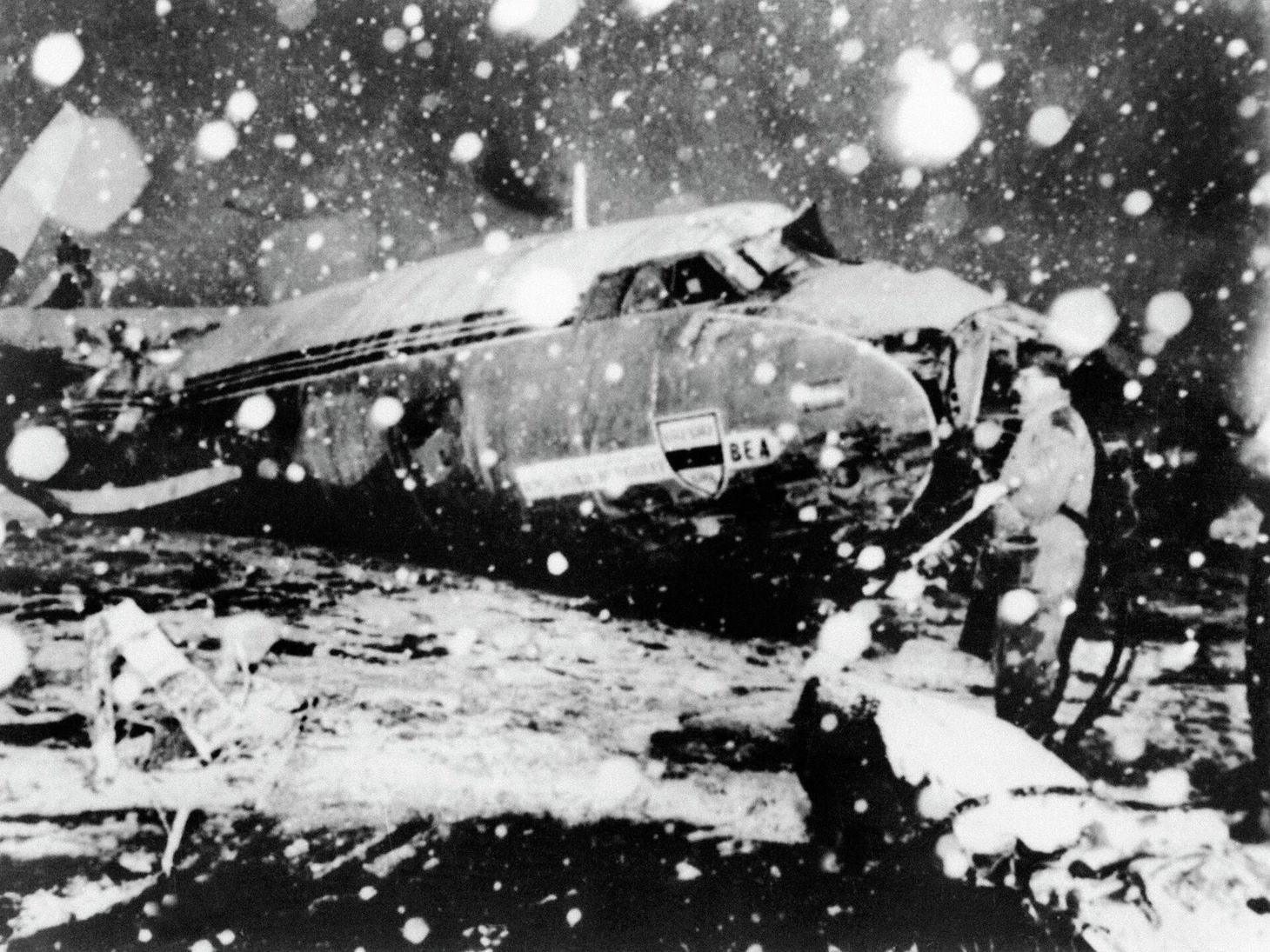 Самолет Airspeed Ambassador остановился в Мюнхене для дозаправки. День выдался особенно холодным, температура упала до -4°C, а взлетно-посадочная полоса была покрыта слоем снега и слякоти. Капитан Джеймс Тейн и второй пилот Кеннет Реймент дважды прерывали взлет из-за проблем с левым двигателем.