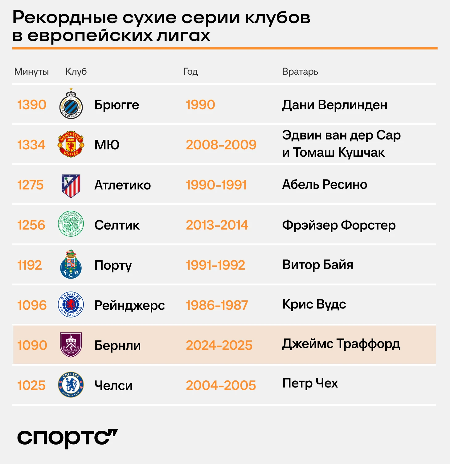 У «Бернли», напомним, пока 9 пропущенных в 34 играх.